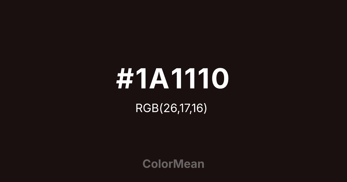Convert Licorice (#1A1110) across different color models and formats. These conversions help designers work seamlessly between digital and print media, ensuring this color maintains its intended appearance across RGB screens, CMYK printers, and HSL color manipulations.