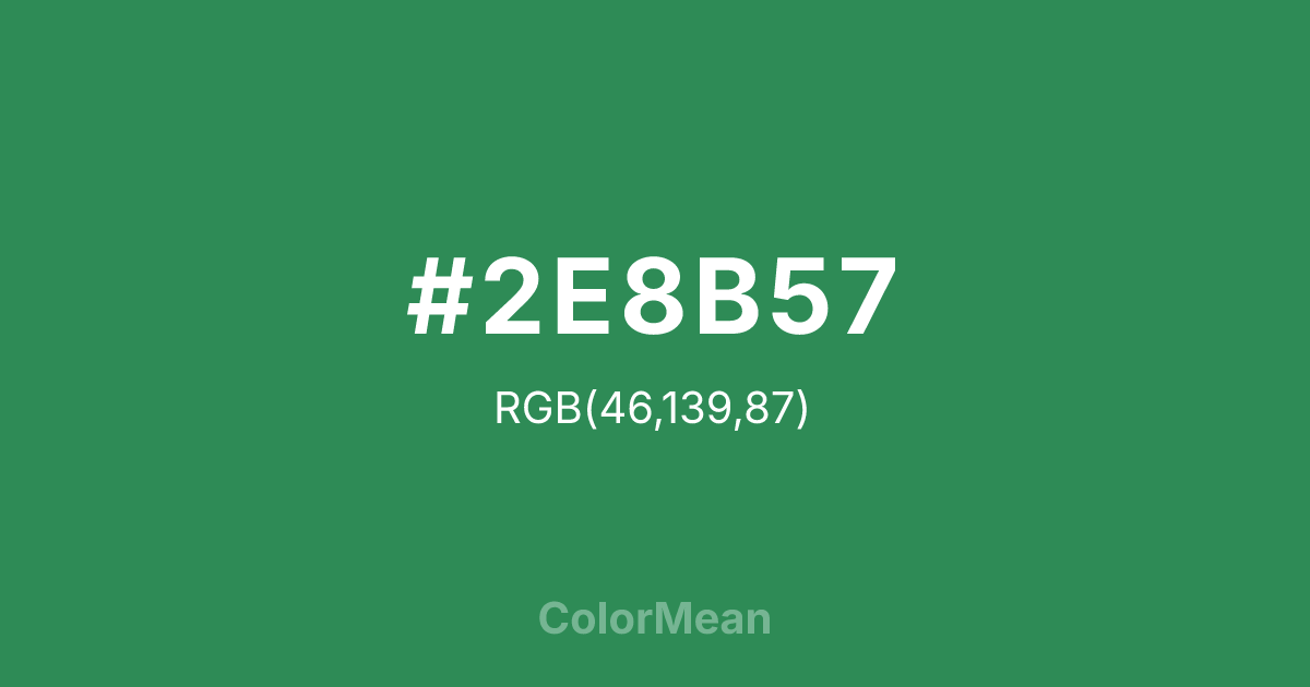 Sea Green 4 (#2E8B57) RGB value is (46, 139, 87). The hex color red value is 46, green is 139, and blue is 87. Its HSL format shows a hue of 146°, saturation of 50%, and lightness of 36%. The CMYK process values are 67%, 0%, 37%, 45%.