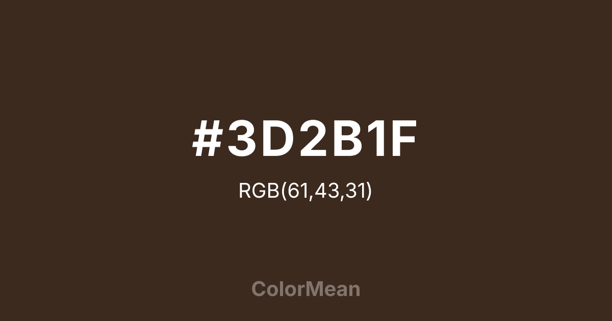 Convert Bistre (#3D2B1F) across different color models and formats. These conversions help designers work seamlessly between digital and print media, ensuring this color maintains its intended appearance across RGB screens, CMYK printers, and HSL color manipulations.