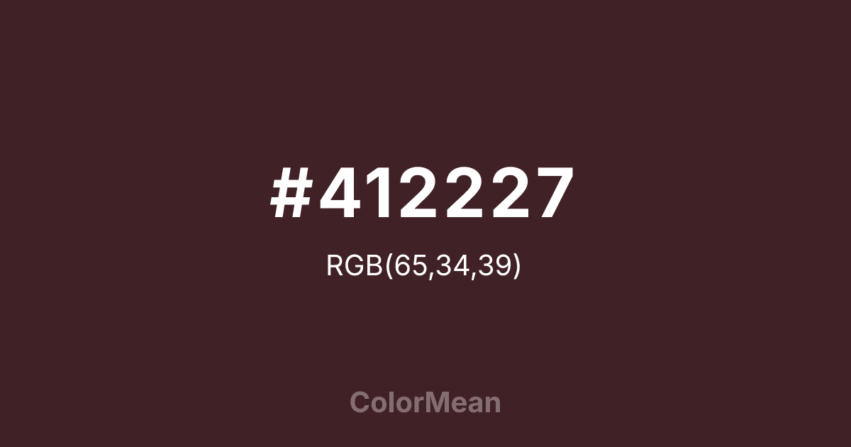 Black Red (#412227) RGB value is (65, 34, 39). The hex color red value is 65, green is 34, and blue is 39. Its HSL format shows a hue of 350°, saturation of 31%, and lightness of 19%. The CMYK process values are 0%, 48%, 40%, 75%.
