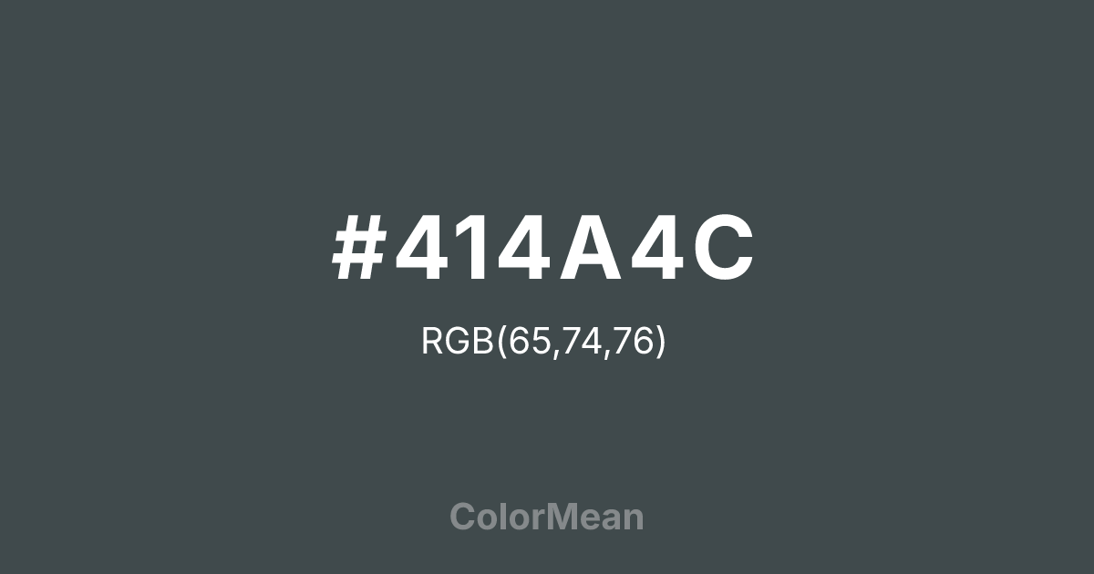 Outer Space (#414A4C) RGB value is (65, 74, 76). The hex color red value is 65, green is 74, and blue is 76. Its HSL format shows a hue of 191°, saturation of 8%, and lightness of 28%. The CMYK process values are 14%, 3%, 0%, 70%.