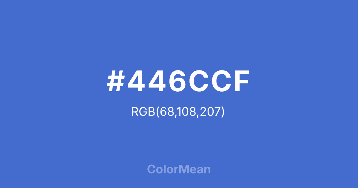 Convert Han Blue (#446CCF) across different color models and formats. These conversions help designers work seamlessly between digital and print media, ensuring this color maintains its intended appearance across RGB screens, CMYK printers, and HSL color manipulations.