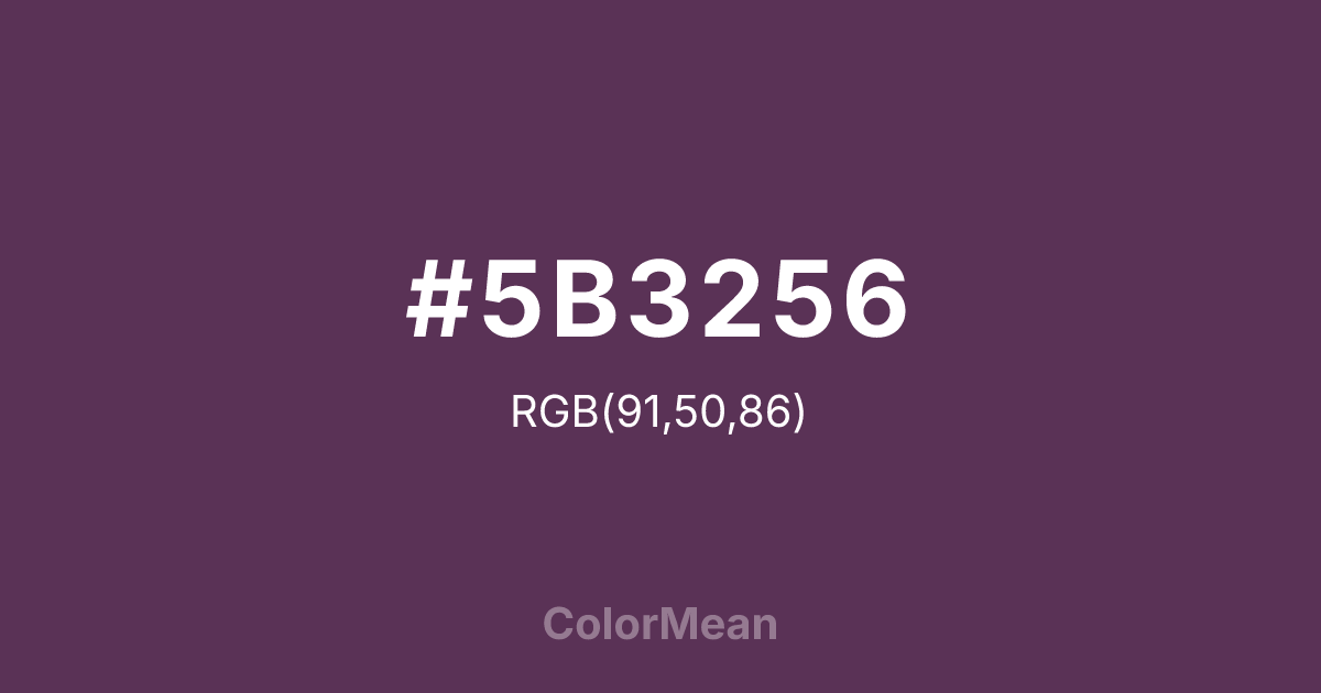 Japanese Violet (#5B3256) RGB value is (91, 50, 86). The hex color red value is 91, green is 50, and blue is 86. Its HSL format shows a hue of 307°, saturation of 29%, and lightness of 28%. The CMYK process values are 0%, 45%, 5%, 64%.