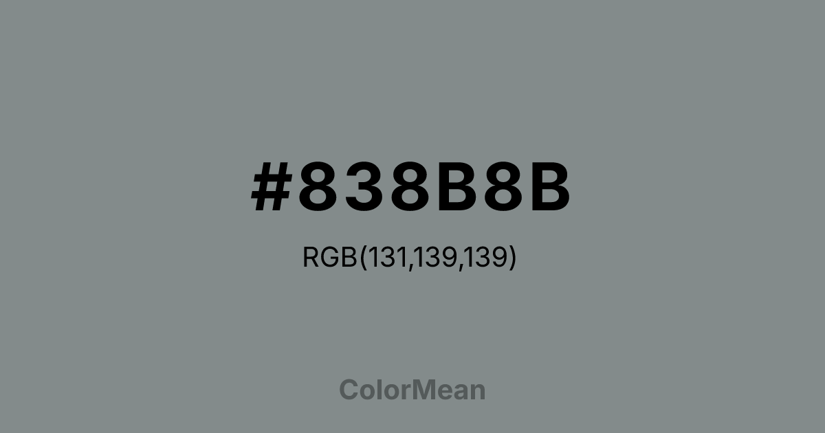 Azure4 (#838B8B) RGB value is (131, 139, 139). The hex color red value is 131, green is 139, and blue is 139. Its HSL format shows a hue of 180°, saturation of 3%, and lightness of 53%. The CMYK process values are 6%, 0%, 0%, 45%.