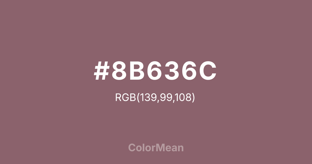 Convert Pink4 (#8B636C) across different color models and formats. These conversions help designers work seamlessly between digital and print media, ensuring this color maintains its intended appearance across RGB screens, CMYK printers, and HSL color manipulations.
