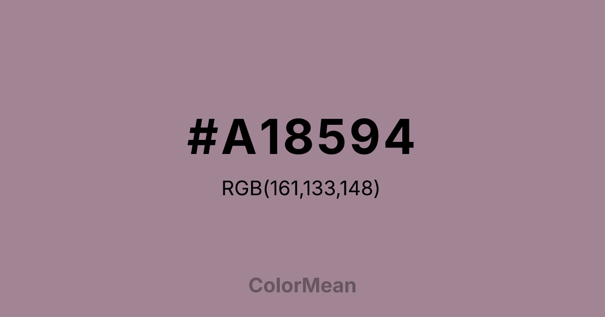 Pastel Violet (#A18594) RGB value is (161, 133, 148). The hex color red value is 161, green is 133, and blue is 148. Its HSL format shows a hue of 328°, saturation of 13%, and lightness of 58%. The CMYK process values are 0%, 17%, 8%, 37%.
