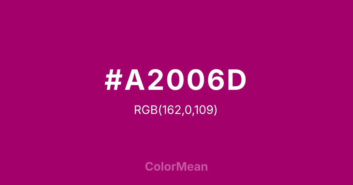 Convert Flirt (#A2006D) across different color models and formats. These conversions help designers work seamlessly between digital and print media, ensuring this color maintains its intended appearance across RGB screens, CMYK printers, and HSL color manipulations.