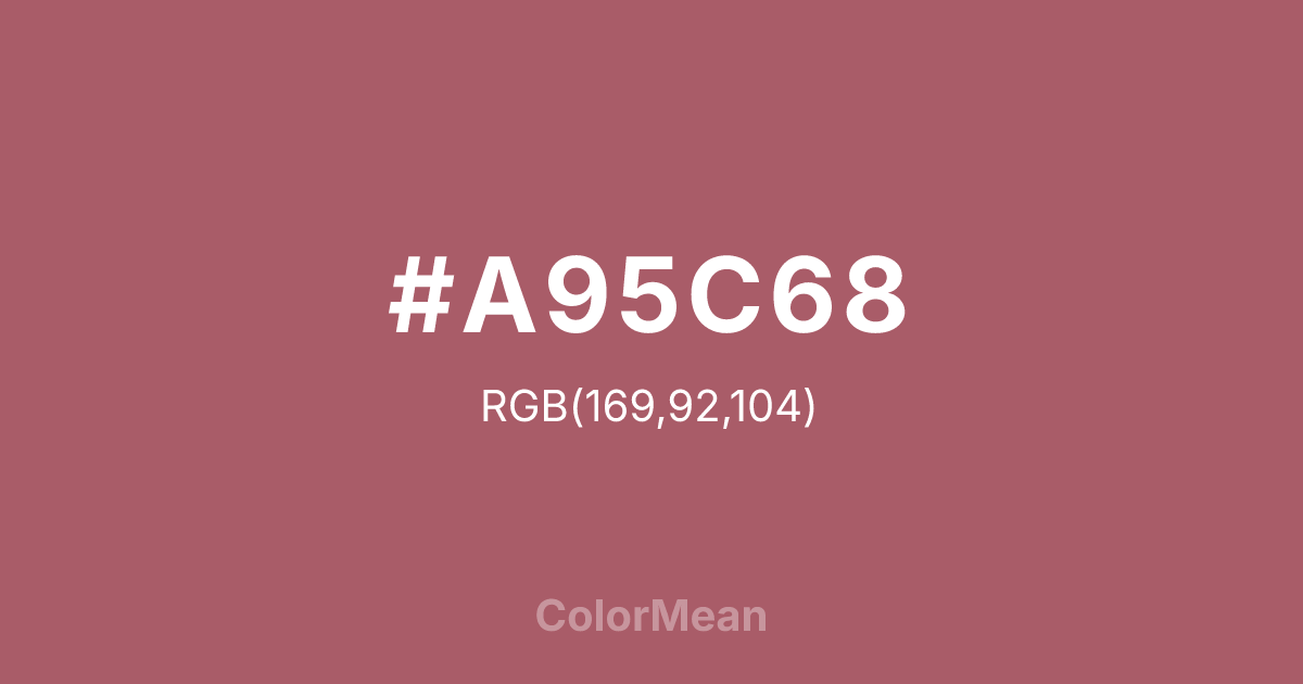 Deep Puce (#A95C68) RGB value is (169, 92, 104). The hex color red value is 169, green is 92, and blue is 104. Its HSL format shows a hue of 351°, saturation of 31%, and lightness of 51%. The CMYK process values are 0%, 46%, 38%, 34%.