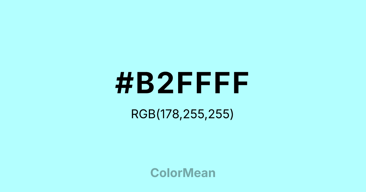 Convert Italian Sky Blue (#B2FFFF) across different color models and formats. These conversions help designers work seamlessly between digital and print media, ensuring this color maintains its intended appearance across RGB screens, CMYK printers, and HSL color manipulations.