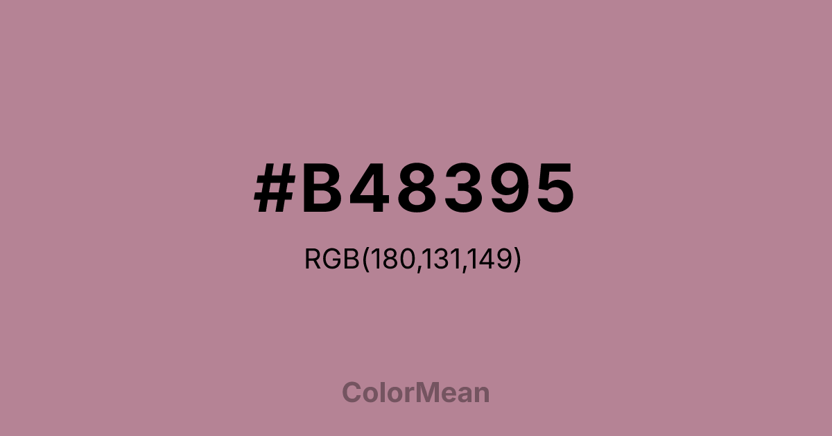 English Lavender (#B48395) RGB value is (180, 131, 149). The hex color red value is 180, green is 131, and blue is 149. Its HSL format shows a hue of 338°, saturation of 25%, and lightness of 61%. The CMYK process values are 0%, 27%, 17%, 29%.