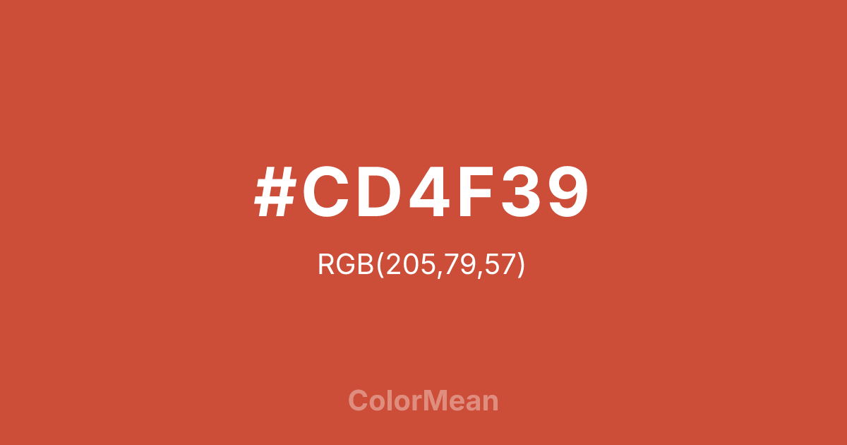 Convert Tomato 3 (#CD4F39) across different color models and formats. These conversions help designers work seamlessly between digital and print media, ensuring this color maintains its intended appearance across RGB screens, CMYK printers, and HSL color manipulations.
