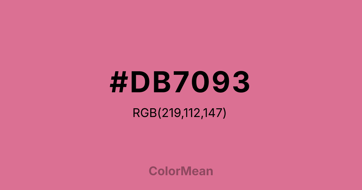 Pale Violet Red (#DB7093) RGB value is (219, 112, 147). The hex color red value is 219, green is 112, and blue is 147. Its HSL format shows a hue of 340°, saturation of 60%, and lightness of 65%. The CMYK process values are 0%, 49%, 33%, 14%.