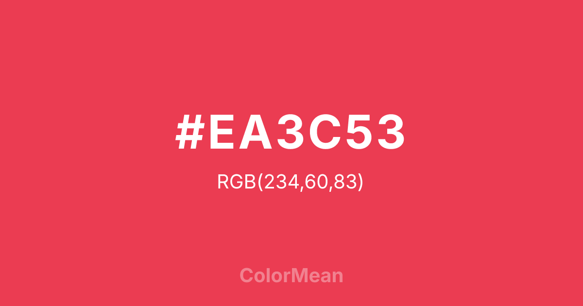 Desire (#EA3C53) RGB value is (234, 60, 83). The hex color red value is 234, green is 60, and blue is 83. Its HSL format shows a hue of 352°, saturation of 81%, and lightness of 58%. The CMYK process values are 0%, 74%, 65%, 8%.