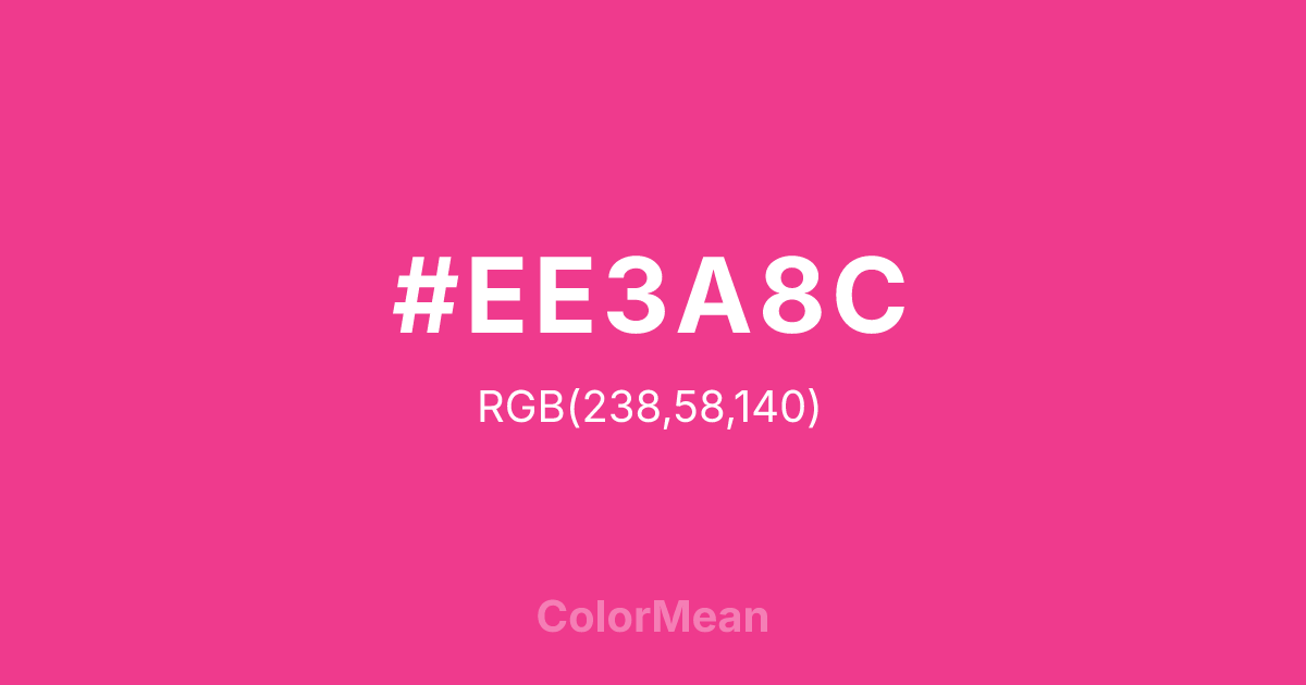 Convert Violet Red 2 (#EE3A8C) across different color models and formats. These conversions help designers work seamlessly between digital and print media, ensuring this color maintains its intended appearance across RGB screens, CMYK printers, and HSL color manipulations.