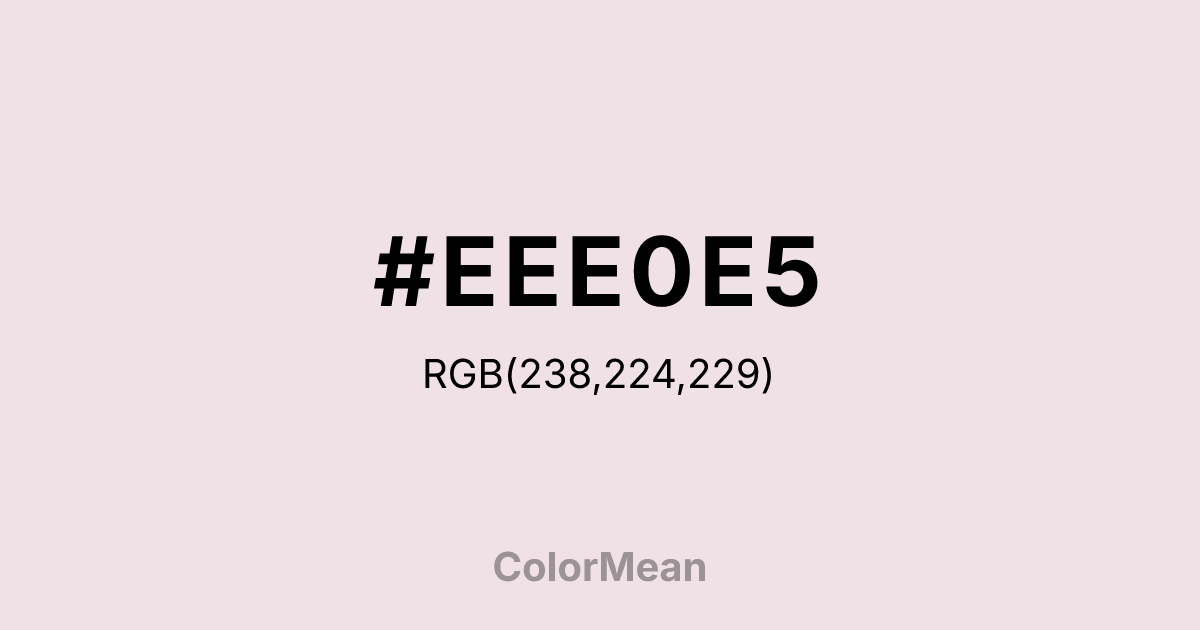 Lavender Blush 2 (#EEE0E5) RGB value is (238, 224, 229). The hex color red value is 238, green is 224, and blue is 229. Its HSL format shows a hue of 339°, saturation of 29%, and lightness of 91%. The CMYK process values are 0%, 6%, 4%, 7%.