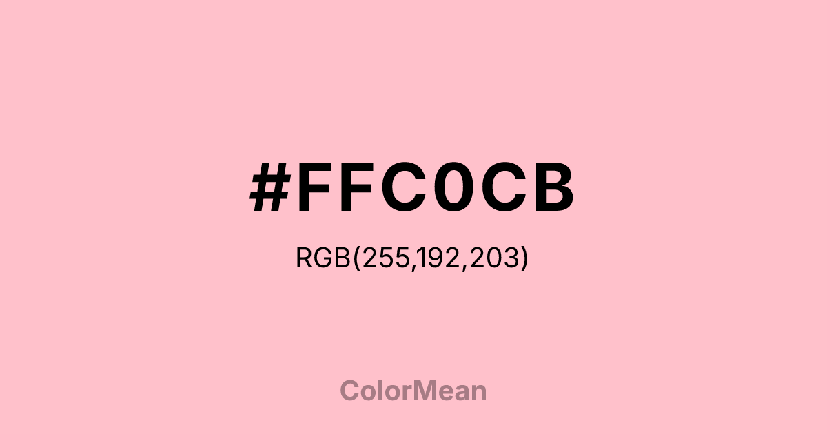 Pink (#FFC0CB) RGB value is (255, 192, 203). The hex color red value is 255, green is 192, and blue is 203. Its HSL format shows a hue of 350°, saturation of 100%, and lightness of 88%. The CMYK process values are 0%, 25%, 20%, 0%.
